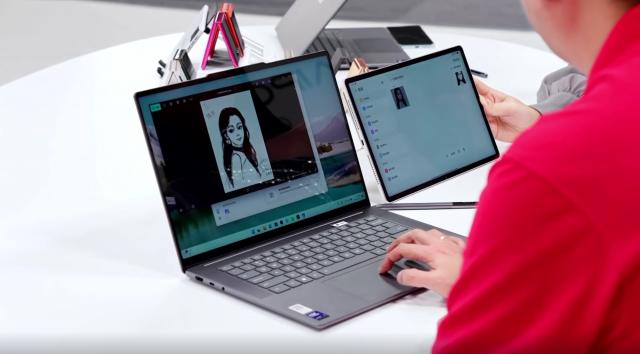 对移动办公人员和经常需要专业创作的人来说,AIPC 这是他们的生产力神器。联想 YOGAAir 15 AuraAI 在生产力和便携性之间,元启版实现了笔记本“轻薄、性能、续航”的平衡,为用户带来了“全天动力,大有作为”的全新体验。整机 1.5kg 重量、13.9mm 厚度带来的便携性,加上长时间的电池寿命,还支持快速充电,充电一个小时就可以用一整天,对需要经常带电脑出门的移动上班族不要太友好。这种轻盈让热巴在直播中一次又一次地称赞。除轻薄外,她还对产品质感赞叹不已,机身采用联想自研的丝绸铝材质,给用户带来丝绸般的温柔手感。YOGAAir15 率先搭载第二代英特尔酷睿 Ultra7 Cpu,无论是 AI 生成文本、图像、视频,或者 4K 视频编辑、渲染都能轻松应对,无疑是创作者提高效率的最佳武器。