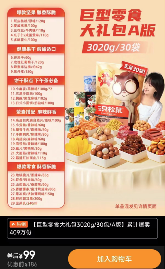 相当于爱吃零食的近一半产品都是由三只松鼠提供的,也算是自营产品。