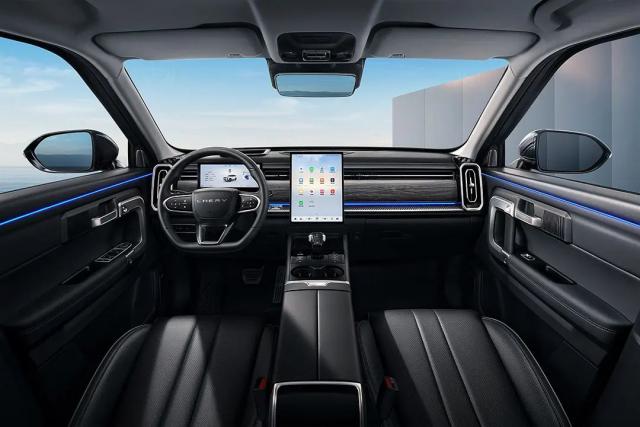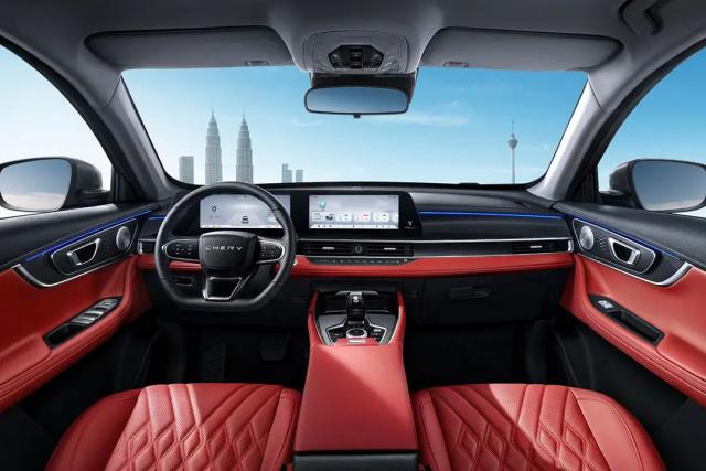 瑞虎 7 高能量版的整体布局基本延续了探索 06 中控台配有悬浮式液晶仪表盘,13.2 英尺纵向中控大屏、厚底三辐方向盘等配置。内置 8155 芯片,同样配备 Lion5.0AI 智能科技座舱。