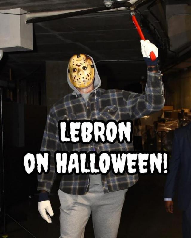 北京时间 11 月 2 今天,詹姆斯本人晒出了今天万圣节的样子,他戴着一副惊艳的面具进入了场馆,湖人队今天的对手是猛龙队。