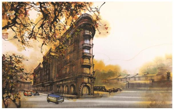 汪家芳的城市主题中国画,也十分重视这样一种洋为中用。他的许多作品可以看到中国传统绘画的写意、工笔甚至界画技巧,他还学习了西方古典建筑的绘画方法,并适当地使用了一些版画和水彩语言。最后,画面透露的中国意境中渗透了许多优秀的中西元素,展现了大气明亮的整体内涵,包含了中国画独特的透明度和空白度。“但愿我的作品让人一看就有中国文化的底蕴,一看就是中国画。"汪家芳说。