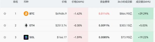 11 月 1 日 23 时左右,比特币市场一度突破 7 万美金,截至最新报 69484 美金,过去 24 在一小时内,虚拟货币共超过 8.7 万人暴仓。本周,BTC一度上升至超级。 74000 美元处于高位,随后出现回调。