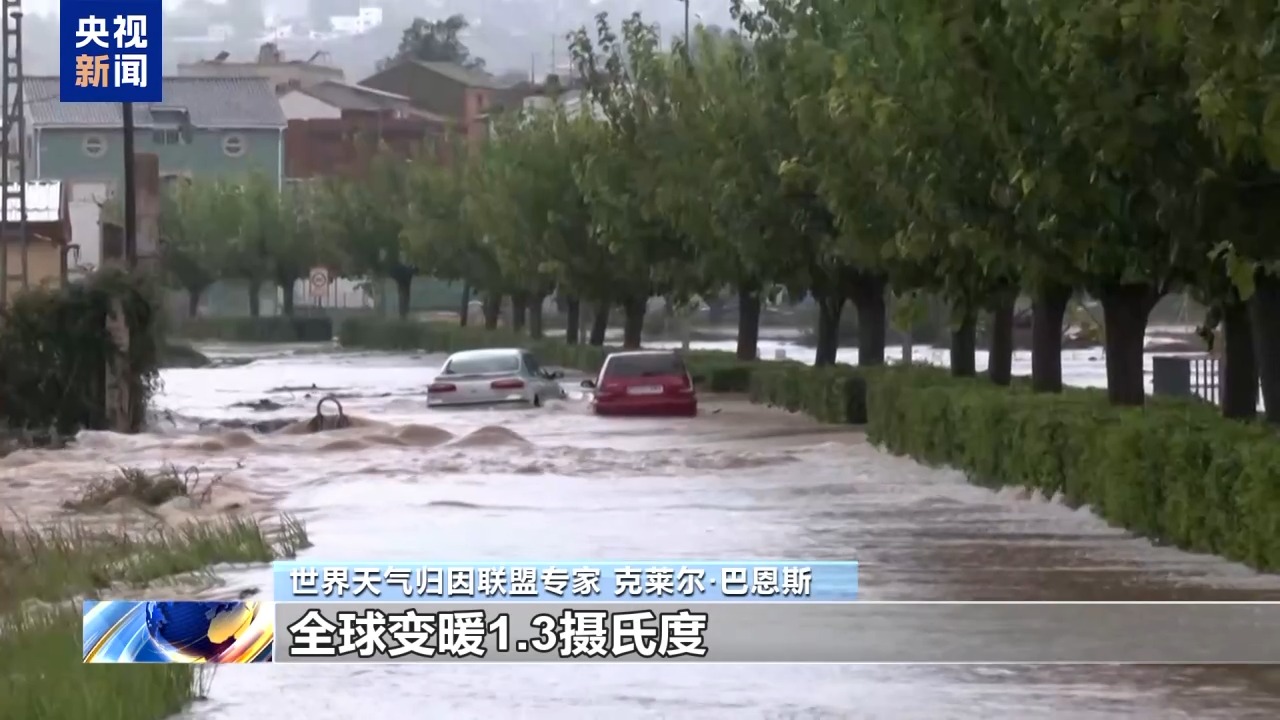 世界天气归因联盟专家 克莱尔·巴恩斯:我们知道的一个事实是,有一种非常强大和清晰的物理行为,叫做克劳修斯-克拉珀龙方程,这种行为被称为克劳修斯-克拉珀龙方程,这种行为最近发生在西班牙,尤其是在短时间内。这意味着每升温一次,云层形成所需的水蒸气含量就会增加7%。由于化石燃料污染和人类活动,全球变暖1.3℃。所以我们预计,这种降雨强度将增加近10%,而不会受到气候变暖因素的影响。