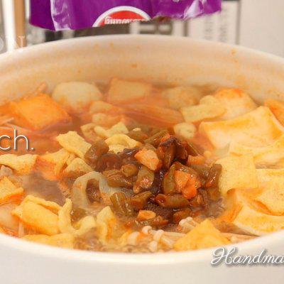 6、6. 煮好所有食材后,加入螺蛳粉配料。