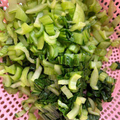4、清洗蔬菜,将开水放入锅中,烫一下 10 秒。捞出