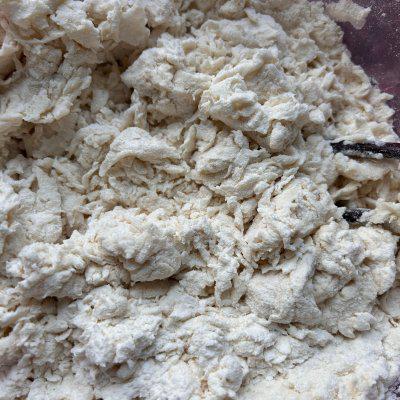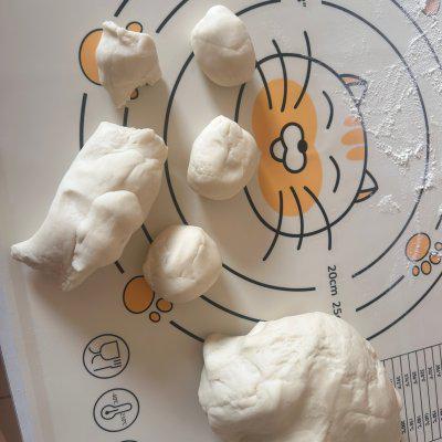 1、面粉加入 3 克白糖 一勺猪油 酵母温水融化,混合在一起