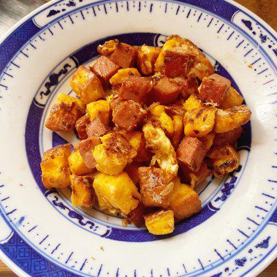 1、将食材切成小丁,用一个鸡蛋拌匀