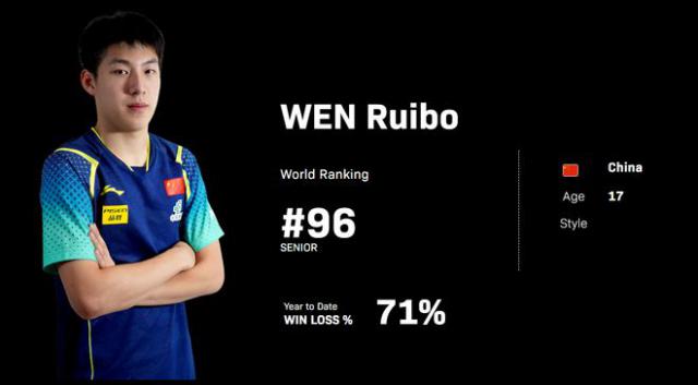 17 年轻的年轻球员温瑞博这次是世界排名第一。 96 能够进入男单决赛已经是大黑马了,他的对手 19 年林诗栋在世界上排名第二,林诗栋也刚刚在这个网站上获得混双冠军,林诗栋在亚锦赛男单决赛中输给了张本智和,WTT 蒙彼利埃冠军半决赛不敌小勒布伦,他太需要单打冠军来扫去痛苦。