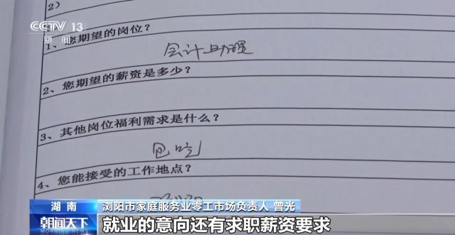 浏阳市家庭服务零工市场负责人 曾光:这是“互补”就业短期求职的账单。我们需要人员、信息、联系方式、就业意向和求职工资要求,然后匹配信息。