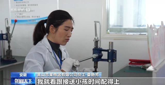 黄山市某电器有限公司员工 夏艳芳:这儿早上八点工作,下午四点半下班,配得上接送孩子的时间,然后周末再休息,可以在家带孩子。