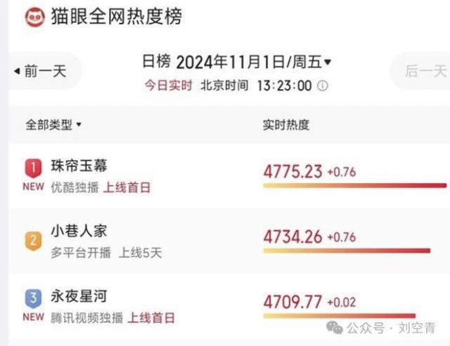 现在的《永夜星河》和《珠帘玉幕》对战的情况,也许只有当初的《如懿传》和《延禧》才能一见钟情?