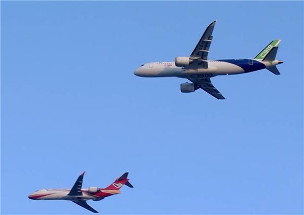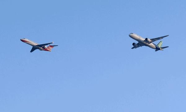 国产飞机同框!C919、ARJ21首次双飞并飞
