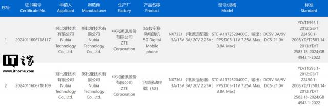 网络数据显示,努比亚新机有 NX733J、NX736J 两种型号,其中 NX736J 换言之,努比亚就是“卫星移动终端(5G)” Z70 Ultra 卫星通信版也有望推出。