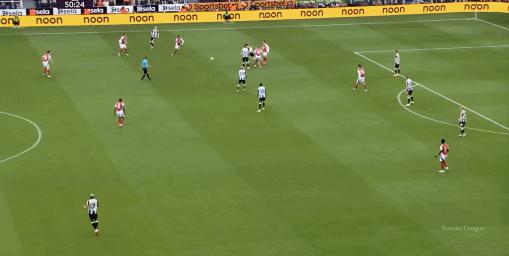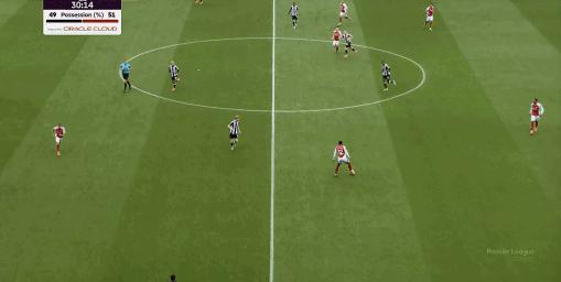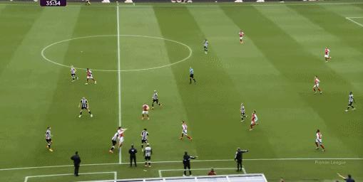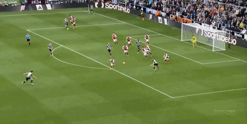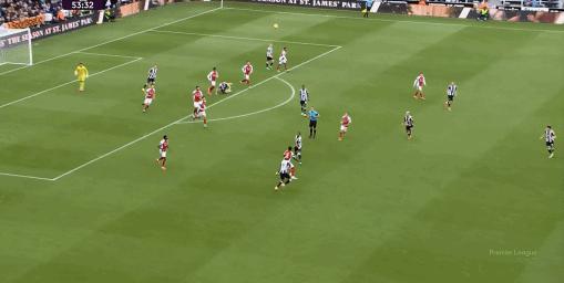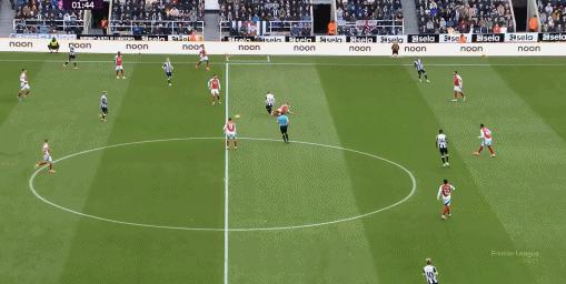 在这个进球中,威洛克首先给争夺顶级的托马斯带来了压力,然后阿森纳的后卫线仍然没有给持球运动员施加足够的压力,这使得伊萨克成功地分配到右边,然后与戈登完成联系。