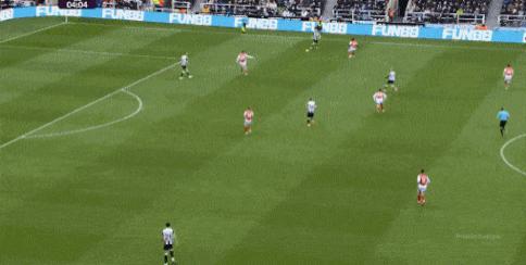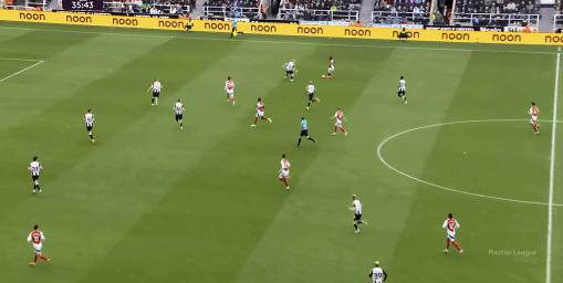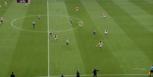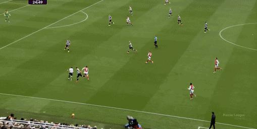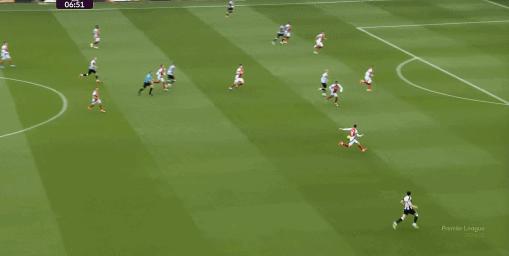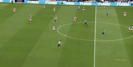 然而,今天,他在两个职责上都没有做好。马丁内利基本上没有机会快速进攻。只有极少数一对一的纽卡边后卫失职了。即使阿森纳通过断球等方式从左边打出机会,没有任何优势的特罗萨德依然会脚软:
