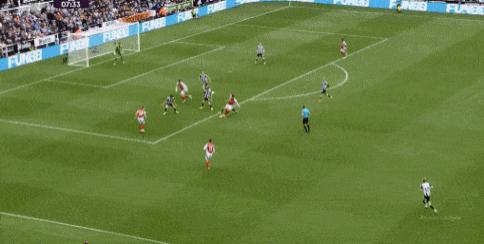 至于戈登和乔林顿为什么不一起打左路,进球回合也可以看得很清楚,埃迪 - 大概率要的是戈登的传中: