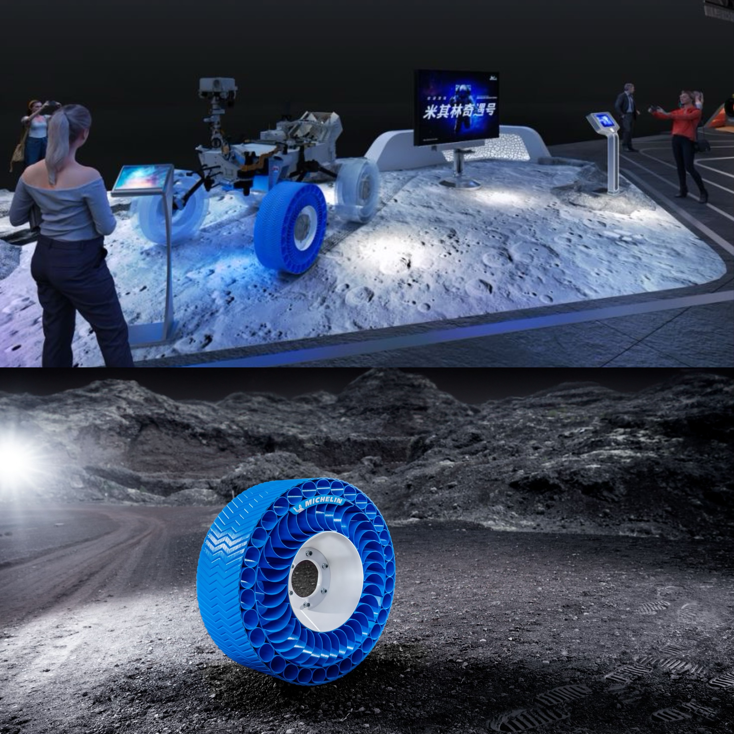 米其林正在为月球探测车开发的免充气轮胎将在第七届中国国际进口博览会上在亚洲首秀。