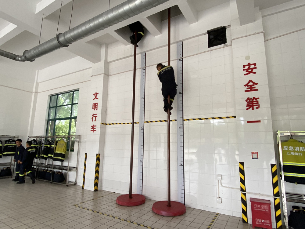 戴世杰说,根据《消防法》,从警铃到第一辆消防车的后轮胎离开车库门,时间不得超过1分钟。因此,新虹特勤站的铜杆设置在宿舍对面,浴室设置在楼梯上。甚至在会议上,任务最重的新虹一号汽车指挥官也被安排在最靠近门的位置。一切都是为了一个词“快”。