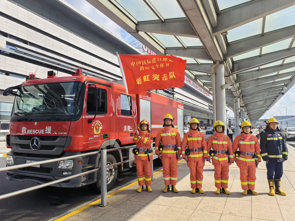 新虹特勤站站长戴世杰表示,在第一届中国国际进口博览会上,作为规范科学高效处理警情的手段和措施,该队在辖区内人员密集区、缺水区、交通拥挤区设立了安防站,将部分消防车和消防员设防到现场。目的是在收到报警时(比平时从特勤站出发)更快地到达现场。确保以最短的时间、最快的行动、最高的效率解决各种紧急情况。