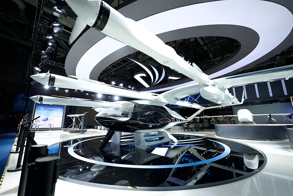 11月3日,第七届中国国际进口博览会进入开幕倒计时2天。当天中午,重量级电动垂直起降飞机M1作为本届中国国际进口博览会最大的展品。 eVTOL(电垂直起降飞机)撕下保护膜,露出芳容。