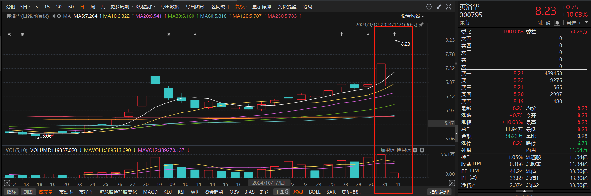 二级市场,周五,英洛华一字涨停,收盘两连板。。