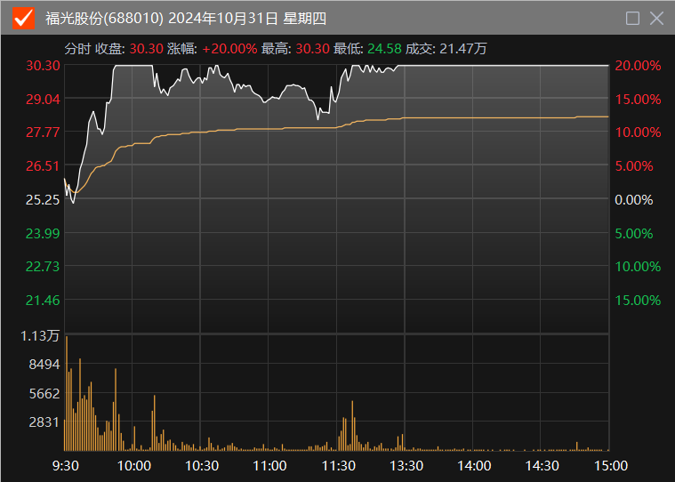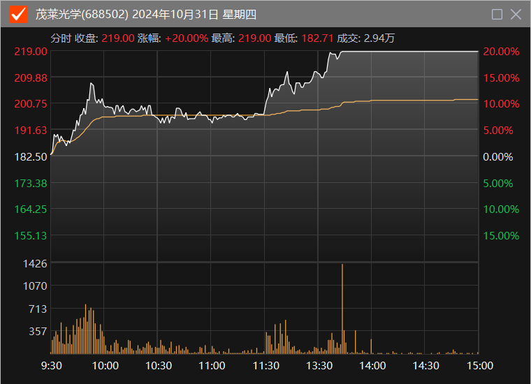 星期二,茂莱光学公司发布了一项研究记录。具有光刻机光学元件的生产加工能力,可根据客户的实际需求进行开发。二级市场,星期四,茂莱光学收于20CM涨停。。