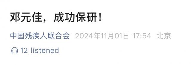 在准备考研的时候,他经常陷入焦虑之中。“别人会因为我的身体条件而歧视我吗?”今年暑假,他收到了。宜昌市残联发出的乒乓球训练邀请。“我从来没有想过我可以挑战体育,但我真的很想试试!”坚持一个月后,他的进步赢得了教练的称赞,从最基本的动作到动作技巧的逐渐熟练,再到掌握“拉球”等相关动作。”“运动给了我自信!"从焦虑中解脱出来的邓元佳逐渐失去了以前的忧虑,在保研面试中,如愿以偿地得到了自己喜欢的结果!