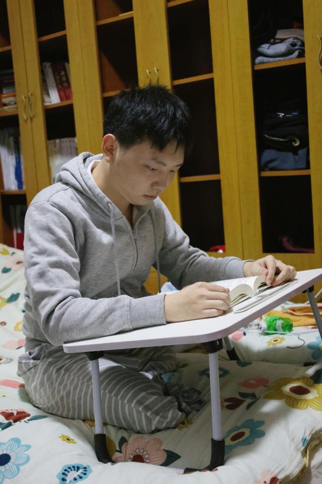 母亲在学校教职员工宿舍租房,在学校餐厅“掌勺”工作。每早晨 7:00,妈妈去上班,他准时进了文科楼自习室,开始了一天的学习。灯亮了,他和妈妈回到了出租屋。每天吃饭的时候,妈妈都会提前给他准备好饭菜,下班后送到自习室。
