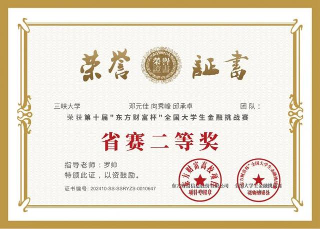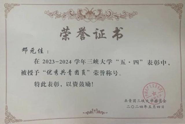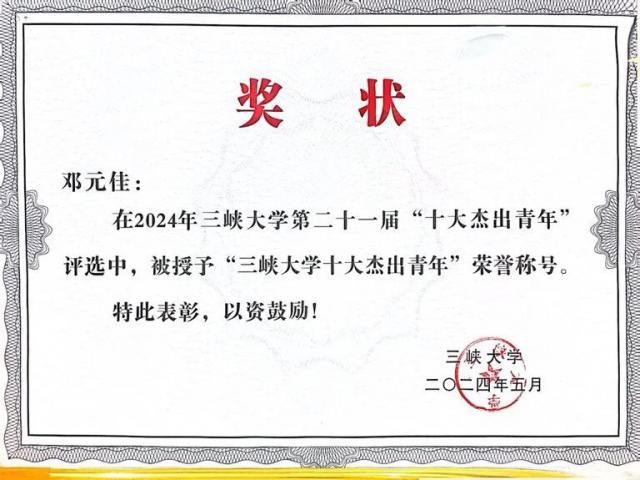 “我意识到我应该改变我的思维,安定下来,把学习作为拓展知识的一种方式。”很快,他的学习方法在下学期取得了成效。——专业第二成绩。这也让他看到了保证研究的希望。于是,他开始参加比赛。两年来,他在第二届“国家研究杯”全国大学生宪法知识大赛中获得一等奖,在第十届“东方财富杯”金融大赛中获得二等奖,在“三峡大学十大杰出青年”中获得二等奖各类表彰 20 余项。