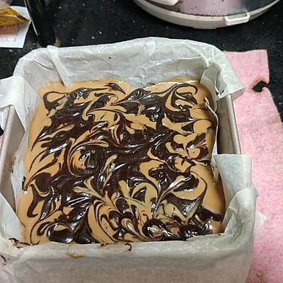 1、所有的材料都要放在室温下,将奶酪和黑糖混合均匀,然后三次将鸡蛋混合均匀,然后加入淡奶油玉米粉和咖啡液。(淡奶油因为冷冻,脂肪颗粒不容易混合均匀,但没关系,味道影响不大。)