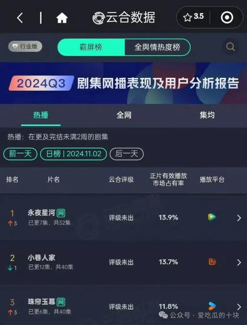 《永夜星河》的成绩看似略胜一筹,但实际上也很普通,毕竟有原有。 IP 打底,结果就是现在这个热度和播放量,怎么看都不像大爆剧的走向。