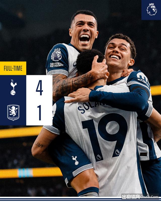 第 78 在几分钟内,保持雷斯中圈附近的传球失误,萨尔在断球后发动反击。 分球,理查利森禁区左侧传送助攻,索兰克中路轻松推射完成双响,热刺 3-1 阿斯顿维拉。
