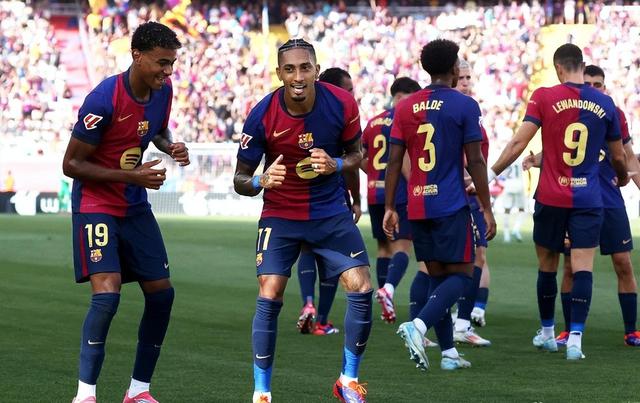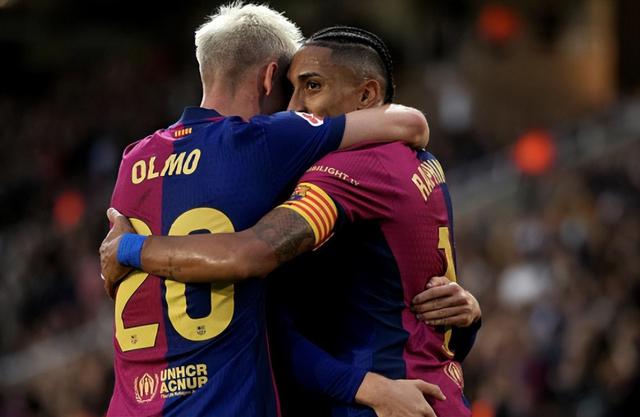 4:1 完胜拜仁,4:0 在德比横扫皇马的国家,在弗里克的带领下,巴萨重新展示了一支巨人球队应该具备的绝对实力。经过一周的休息调整,巴萨在西甲排名第一。 12 轮子,加泰罗尼亚德比和西班牙人在一起,奥尔莫伤愈复出,上演梅开二度,亚马尔风骚的外脚背助攻,加上拉菲尼亚的进球,巴萨 3:1 轻松取胜。