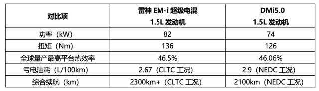 新一代超强节能,热效率 46.5% 雷神是电混专用发动机,全球汽油发动机量产最高。经过实测,配备了雷神。 EM-i 非常电混测试车,极限续航可以达到 2390.5 平均油耗100公里, 2.62 升。