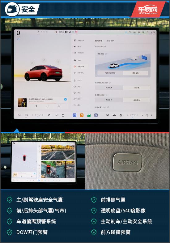 在安全配置方面,评估车配备了丰富的主人。 / 被动式安全配置。就像主体一样。 / 副驾驶座安全气囊,前排 / 后排头部气囊(气帘)、车道偏离预警系统,DOW 开门警告、前方碰撞警告等主要警告 / 被动式安全配置在评估车上均有配置,能有效提高驾驶稳定性,在同级别中具有一定的优势。