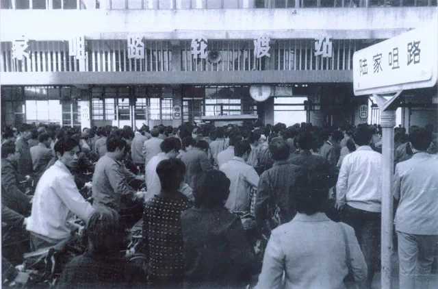 上世纪90年代中期以前,轮渡是市民穿越黄浦江的主要方式,图为陆家嘴路轮渡站。微信号“上海轮渡” 图