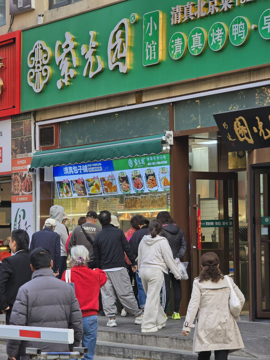 紫光园外墙的大部分面积都给了店铺,一半是清真包子店,一半是清真北京小吃,一个喇叭在店里喊,“馒头特价65美分,”很快就吸引了周围的中老年顾客。