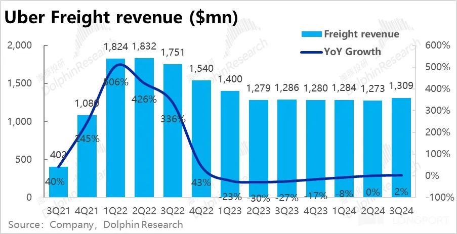 对于 Uber 货运业务,本季度收入约为 13.1 亿元,同比小幅增长 2%,虽然最终告别了萎缩阶段,但在低基数下几乎没有增长,说明该业务目前还没有明显改善,不需要过多关注。