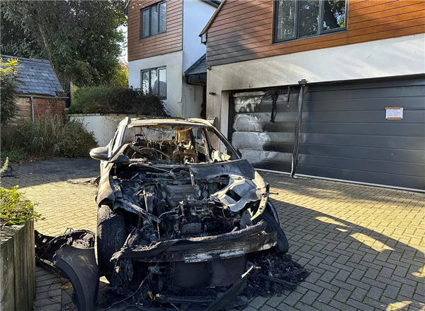 十一月四日,海外媒体报道称,一辆停在英国诺森汉普郡斯普拉顿的奔驰EQA突然起火,主人的房子差点被烧毁。