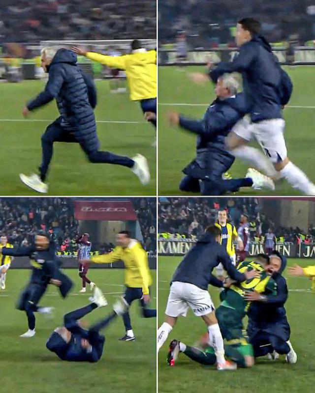 土超第 11 轮子,费内巴切在 5 一分钟被判2个点球的情况下, 102 分钟决杀,3-2 击败特拉布宗,主教练穆里尼奥冲进球场滑跪庆祝,却摔倒了。