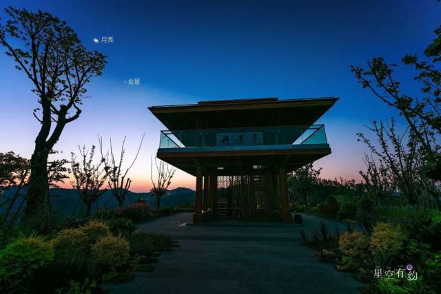 2020 年 4 月 27 金星伴月在四川成都龙泉山丹景台景区拍摄。(蒋涛 摄)