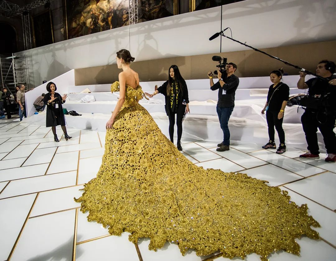 在中国,郭培是第一位做高端定制的设计师, 在2004年,她花了50,000小时设计了第一个高定“大金”, 有多少人说我疯了,我忽略了。
