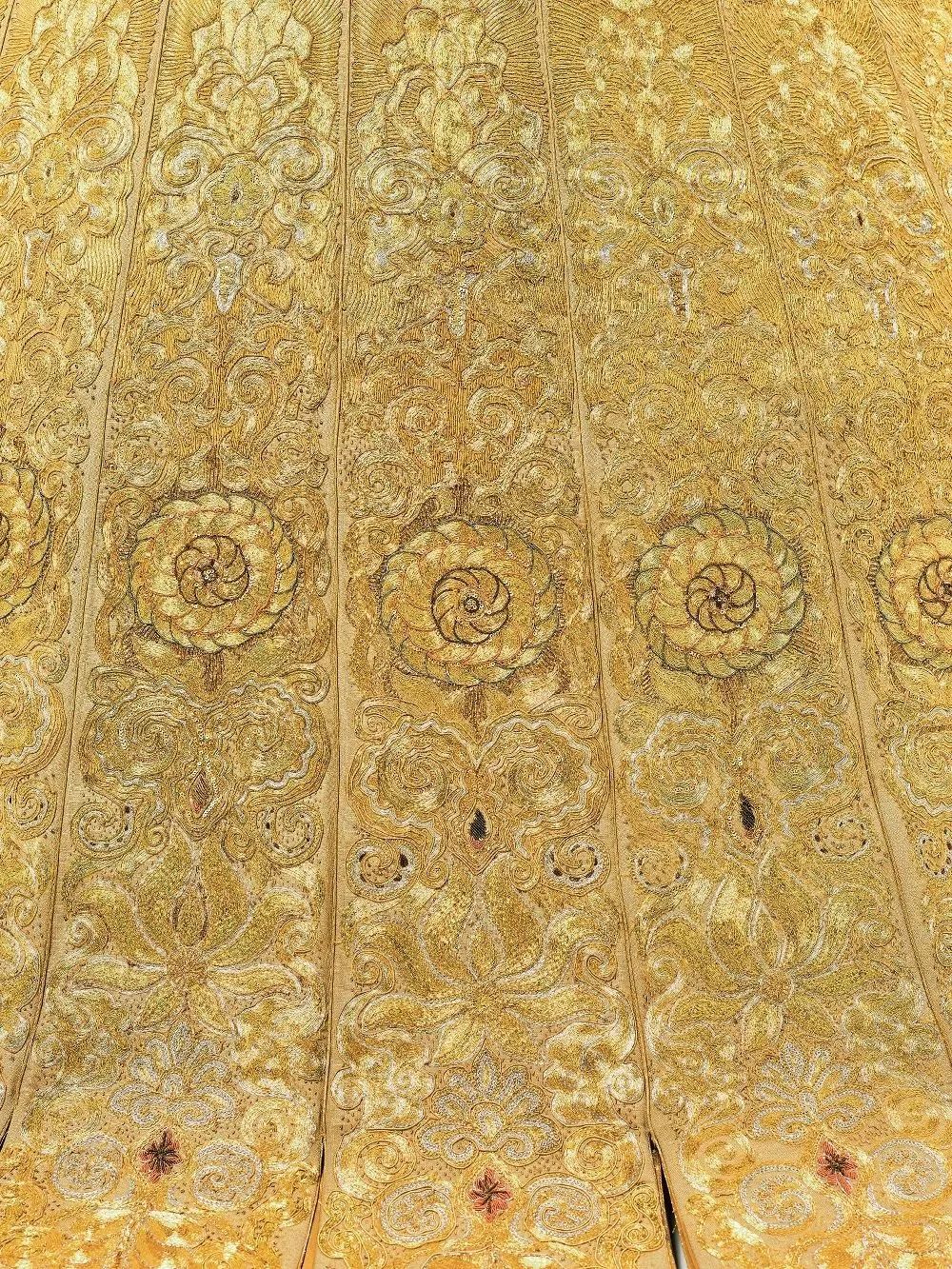 “大金”细节,采用极细的印度金线,用中国传统刺绣技术刺绣。