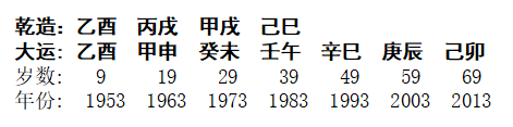 酉运冲去卯杀,妻子与外情人无关,可行壬申运,卯杀又回来了,甲子年水生卯杀,妻子与外情人相处频繁,辛未运,未食复吟,与妻子离婚。