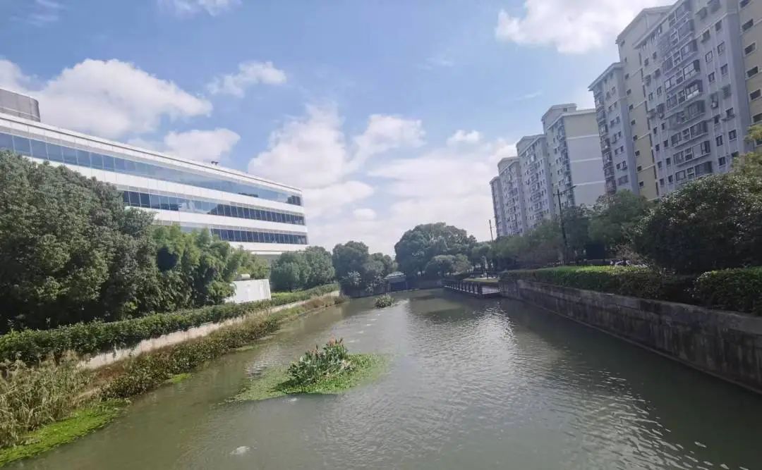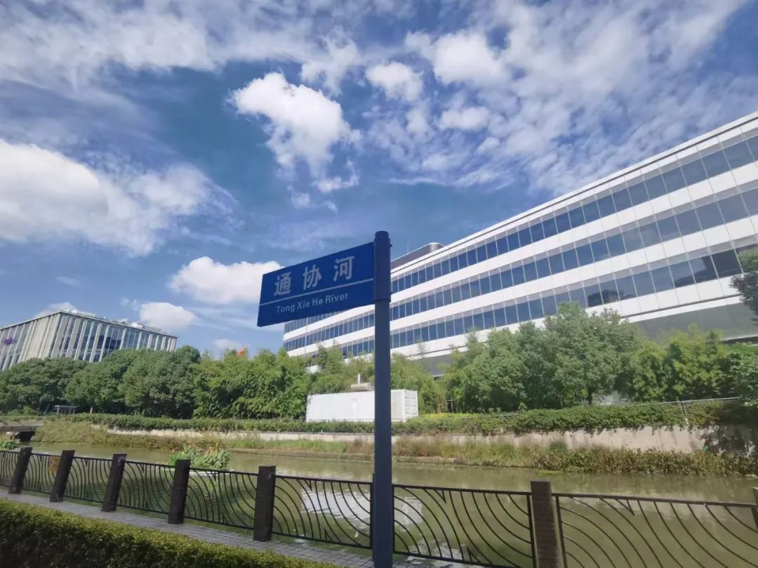 沿着蜿蜒的河流一路前行,经过祁连山南路桥后,是通协河。清澈的河水闪闪发光,IBP国际商务花园二期就在这里。