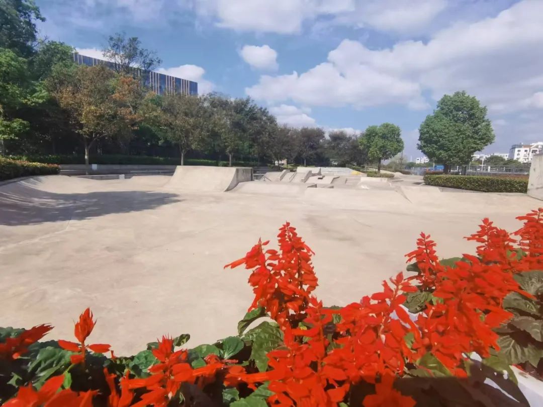 漫步于此,不仅可以徜徉在美丽的滨河风光中,还可以现场观察滑板运动的速度和激情。