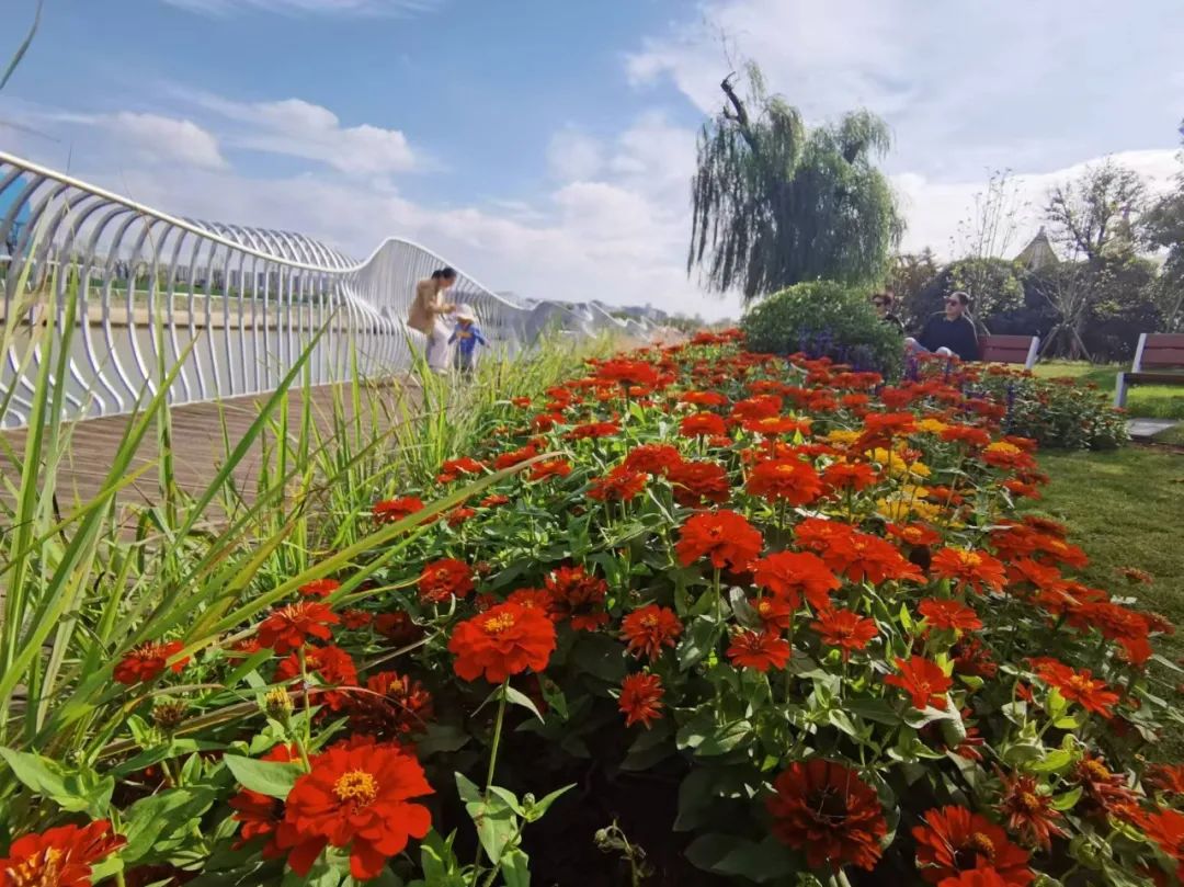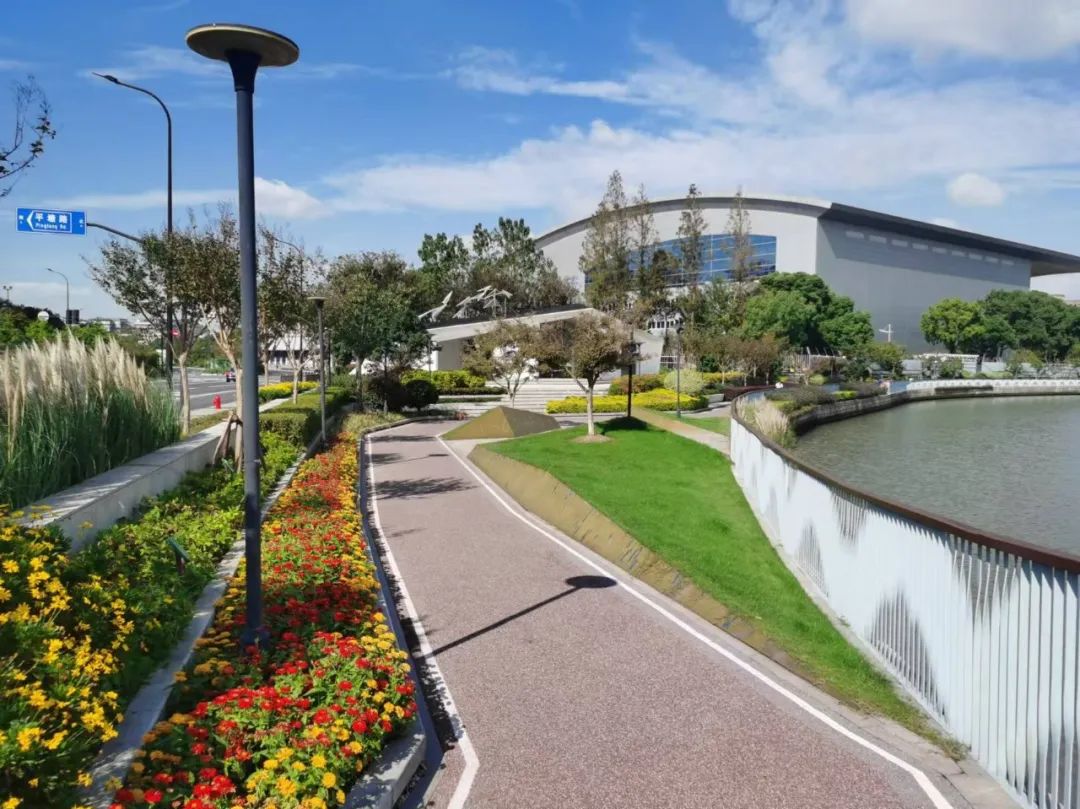 从音乐公园出来后,可以在外环林带的生态绿道上骑自行车,秋日的阳光让外环林带更加美丽。你可以欣赏由红色乌龟和黄色银杏组成的五颜六色的风景,或者在滨水空间漫步,悠闲地听着大自然的低语,释放灵感和活力。