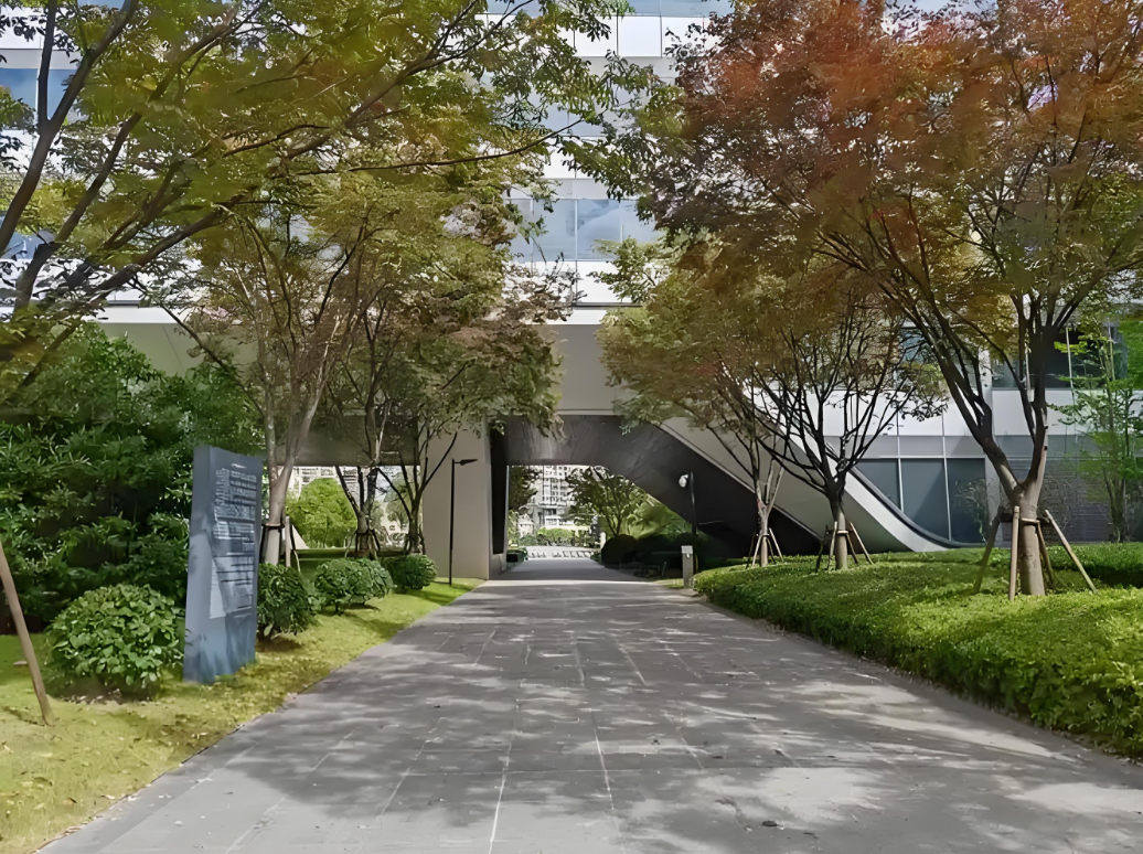 穿梭其中,郁郁葱葱的树木众多在干净的道路两旁,高档商业建筑遍及其中,充满了现代商业气息。