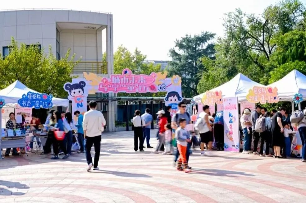 除了内场仪式,在上海儿童博物馆的广场上,儿童服务市场也围绕“儿童参与”、“儿童快乐”、“儿童关怀”、“儿童分享”等主题展开。孩子们体验了科普教学、绿色手工制作、非物质文化、亲子义卖、健康咨询、书籍优惠购买等丰富多彩的项目。同时,现场还开设了“苏河小宁”志愿者报名实践全过程人民民主“我为长宁儿童友好街区建设发展提供一个计划”意见征集摊位,鼓励更多儿童参与社区治理。