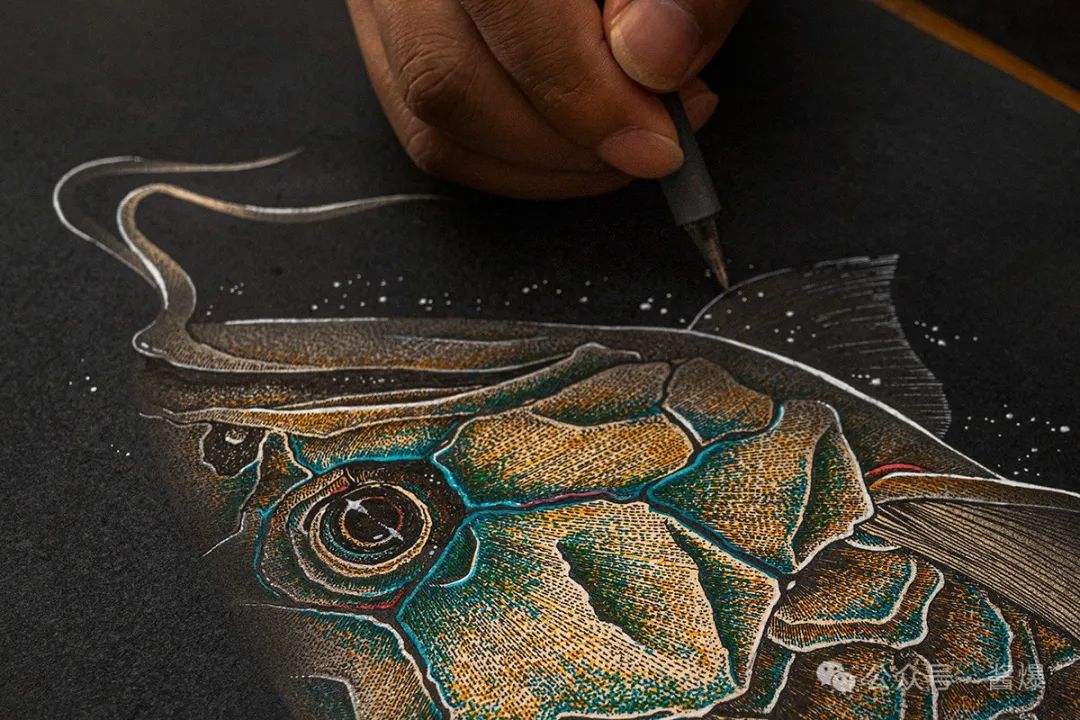 "点画使画作细节更加细腻,但也花费了更多的时间,也许有些人会感到无聊,但我感到非常快乐,也是一种修行。